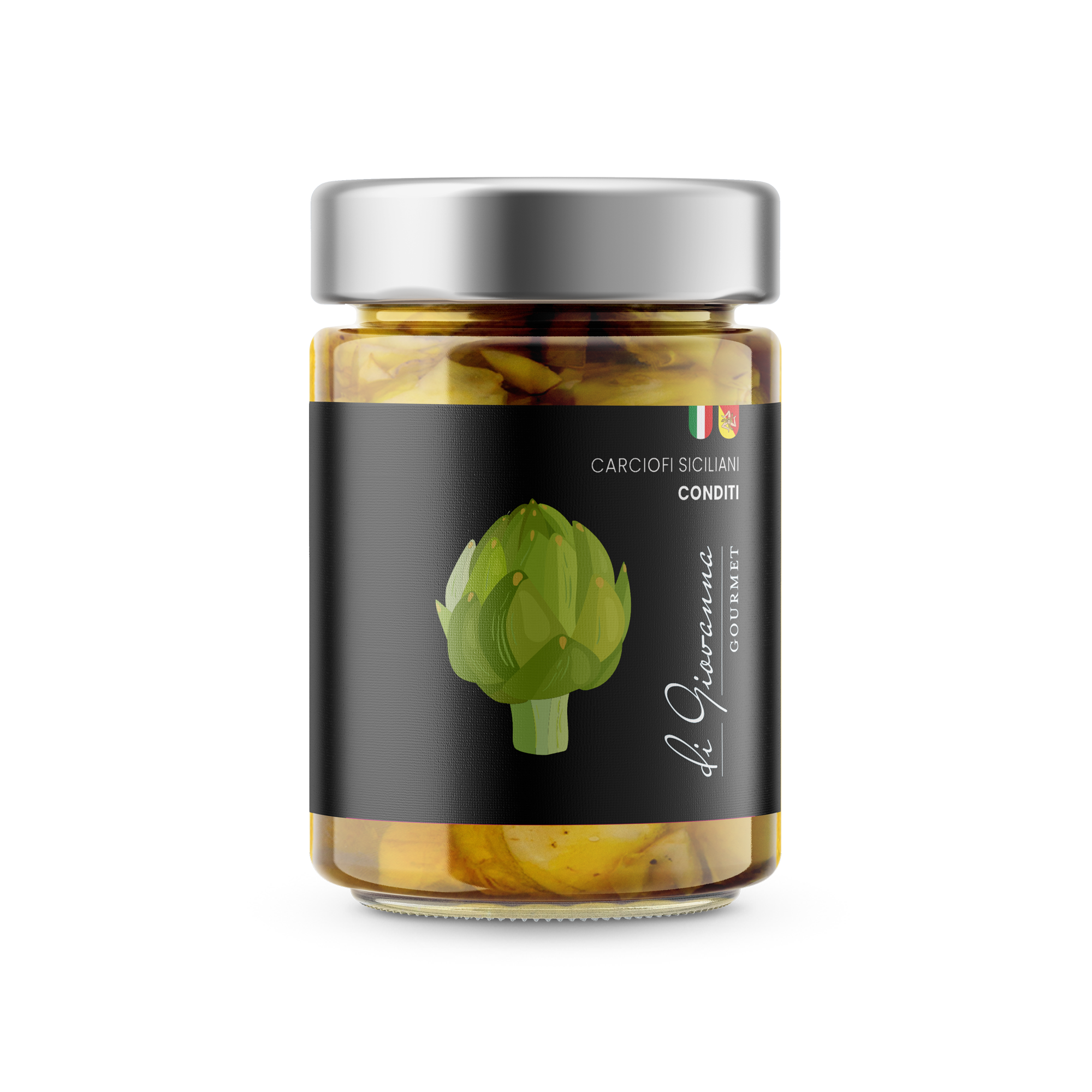 Aus zarten Artischockenherzen, verfeinert mit ausgewählten sizilianischen Kräutern, Olivenöl und einer fein abgestimmten Gewürzmischung.